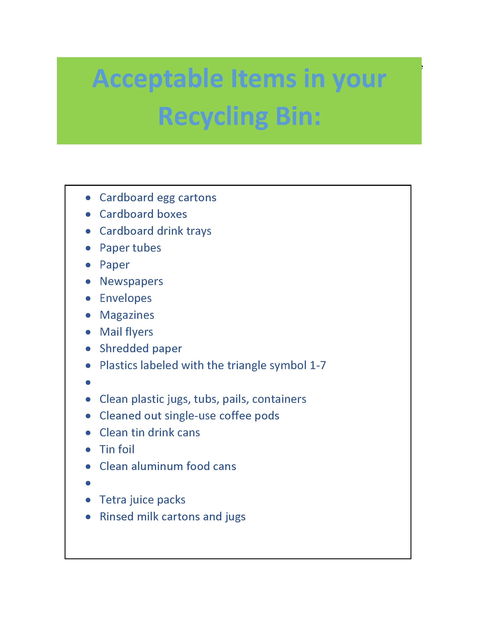 Learn more about what materials you can recycle in this List of Acceptable Items
